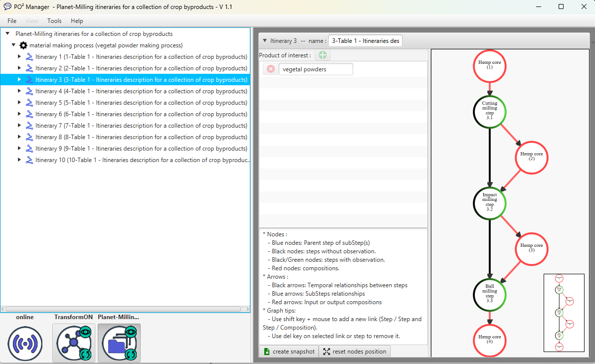 La figure 1 montre la fenêtre de saisie d’un itinéraire de production de poudres végétales.