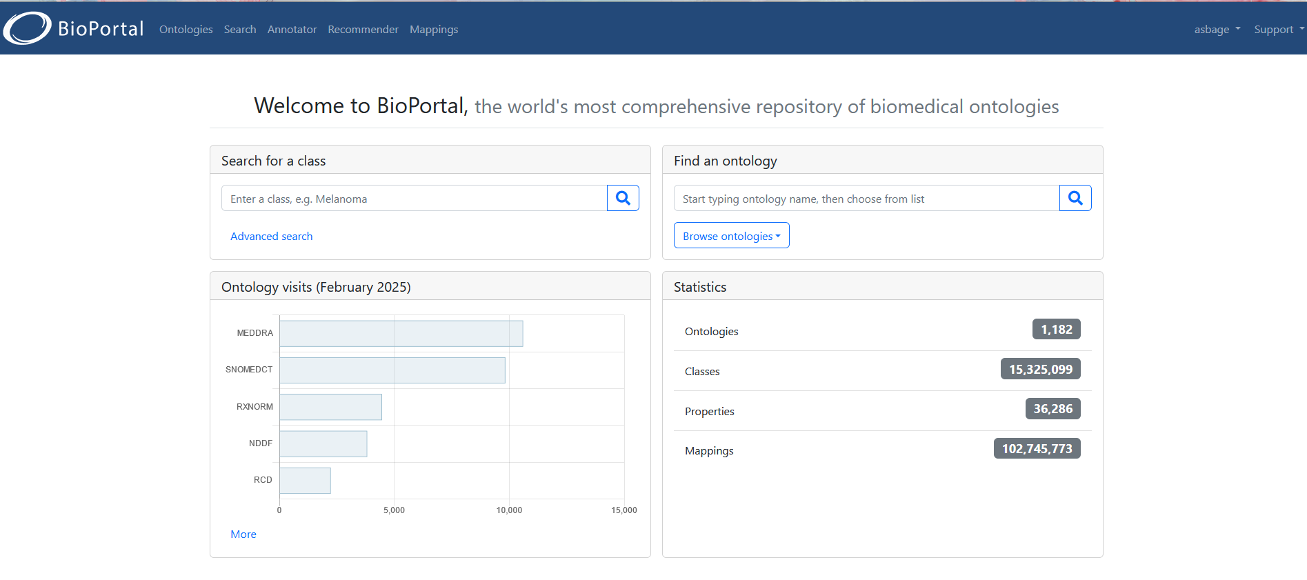 Comme AgroPortal, ce portail de vocabulaires pour le biomédical (BioPortal), s’appuie sur la technologie OntoPortal. Cependant, il fonctionne sur une version plus ancienne.