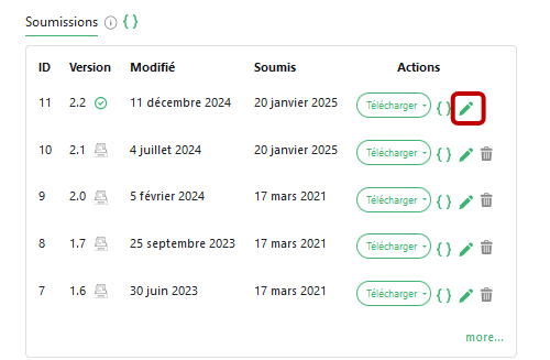 3. Editer une version (submission) existante
