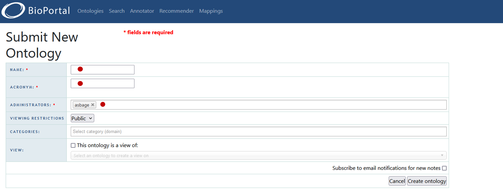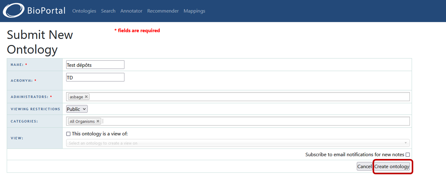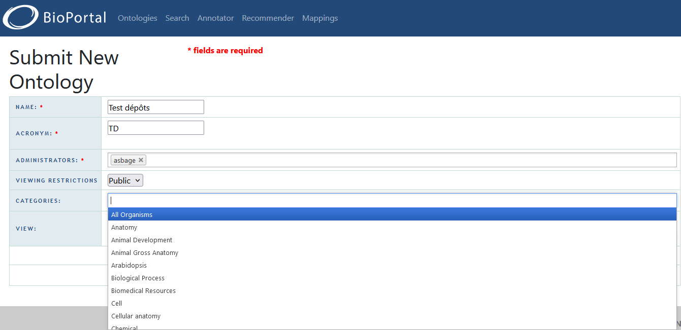 Vous trouverez ci-dessous la procédure pour déposer un vocabulaire sous AgroPortal, celle-ci est identique pour EcoPortal et EarthPortal.